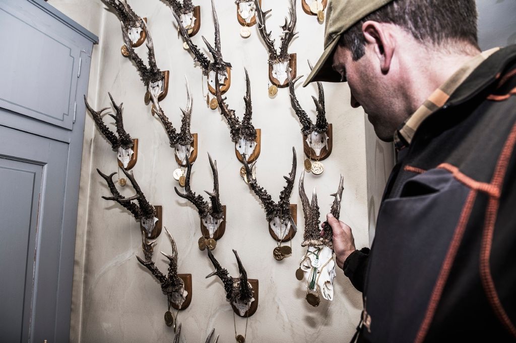 “On Tuesday, Franz Albrecht and the entire camera crew are arriving. We’ve got some really good specimens for them this year”, says Linus, showing me a couple of photos of world-class roe bucks. The garden table is groaning with heavy antlers. Some are casts of the largest of the estate’s bucks through the years – others are the genuine article. The assortment is guaranteed to take away the breath of any committed buck hunter who dreams, just once, of seeing a gold medal buck in the crosshairs...